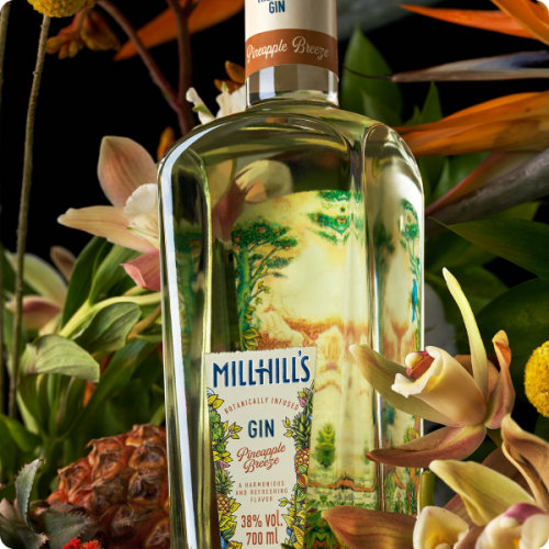 Smakowy gin Millhill's Pineapple Breeze, który pojawił się w sprzedaży w 2021 roku. Pełen egzotycznych smaków, przede wszystkim ananasa.